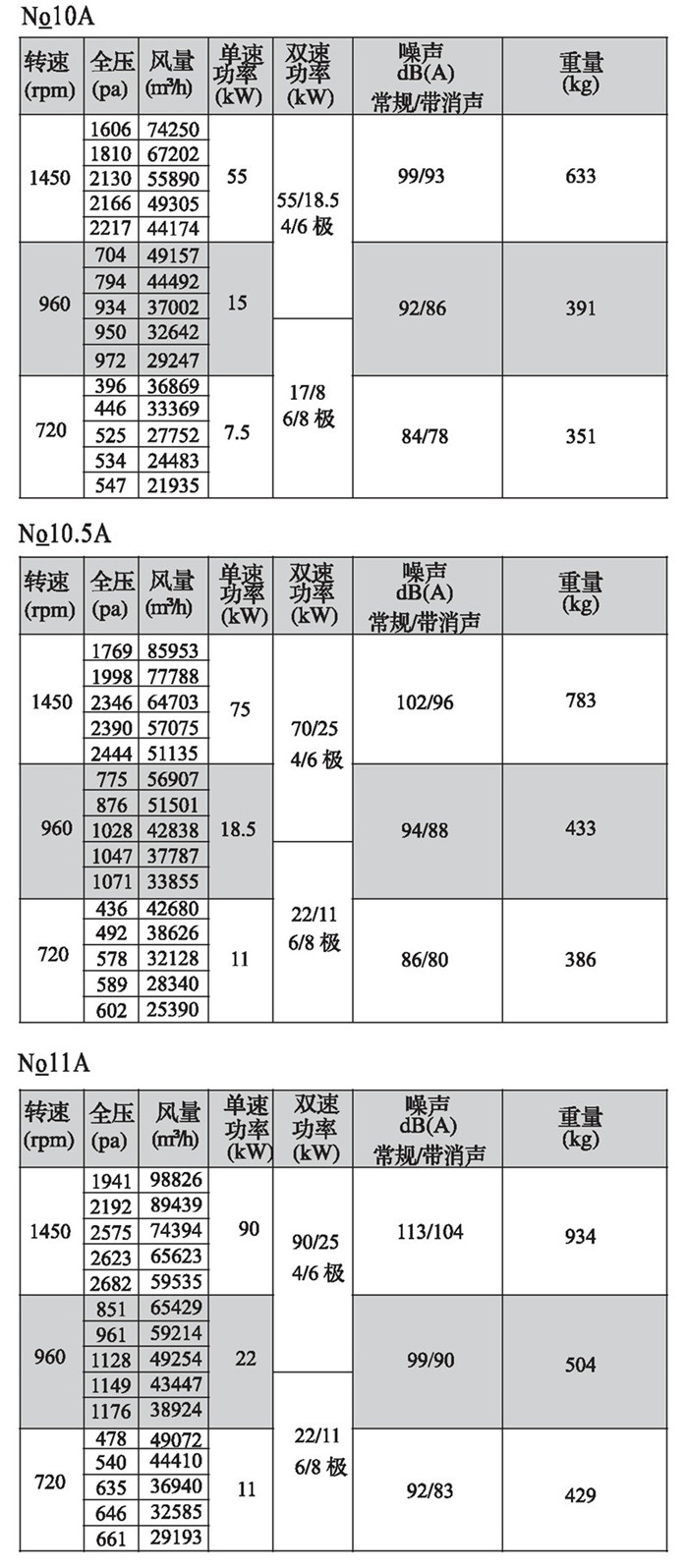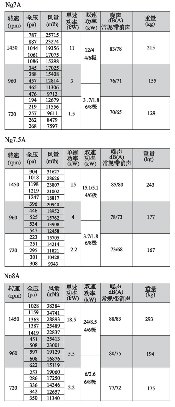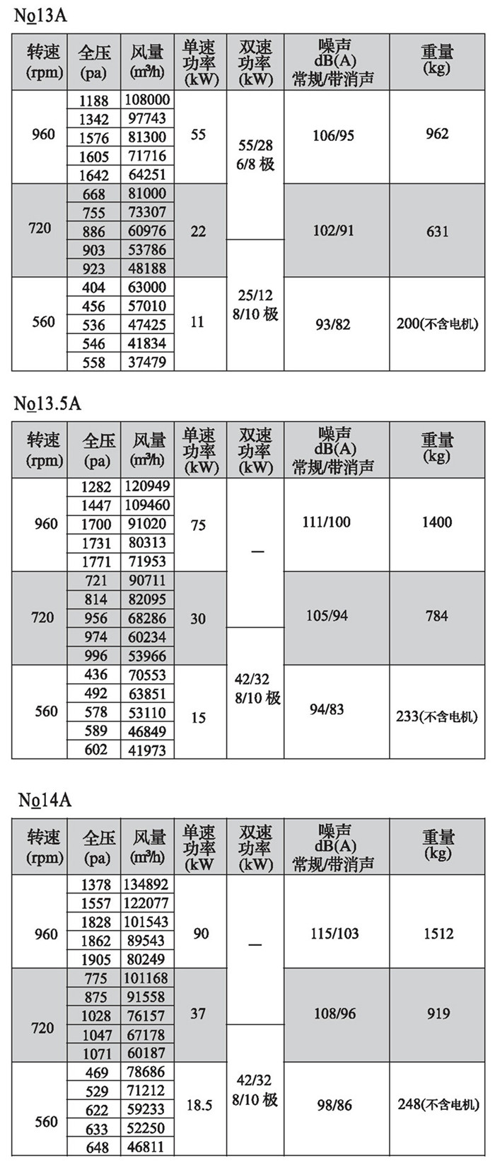 注:雙速風(fēng)機(jī)重量參考同號(hào)中高速風(fēng)機(jī)的重量。