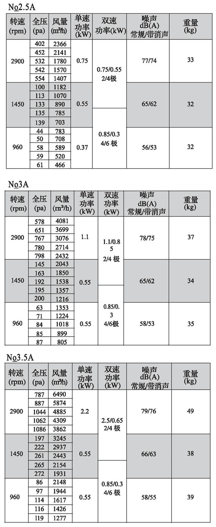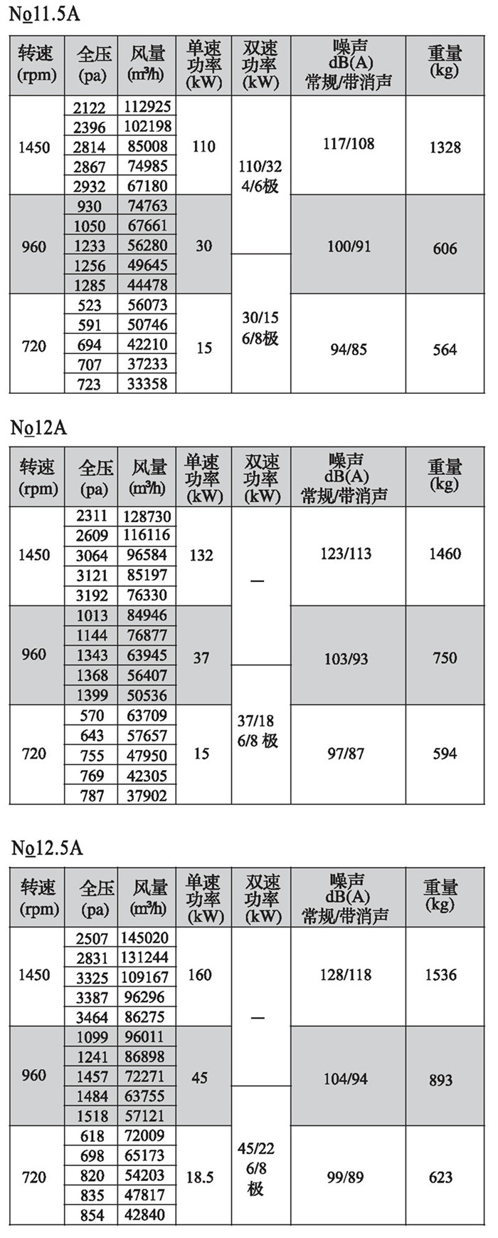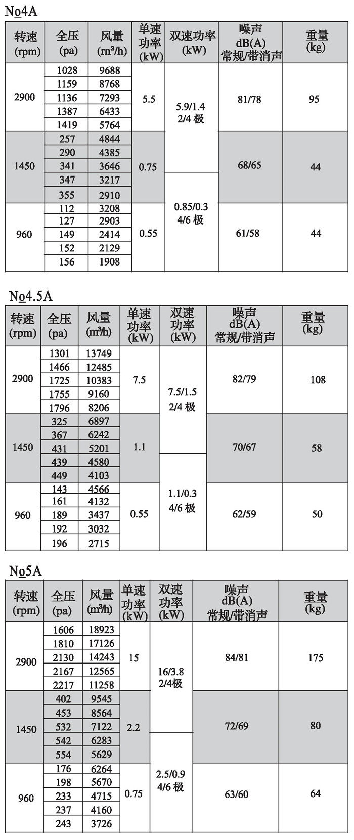 注:雙速風(fēng)機(jī)重量參考同號(hào)中高速風(fēng)機(jī)的重量。