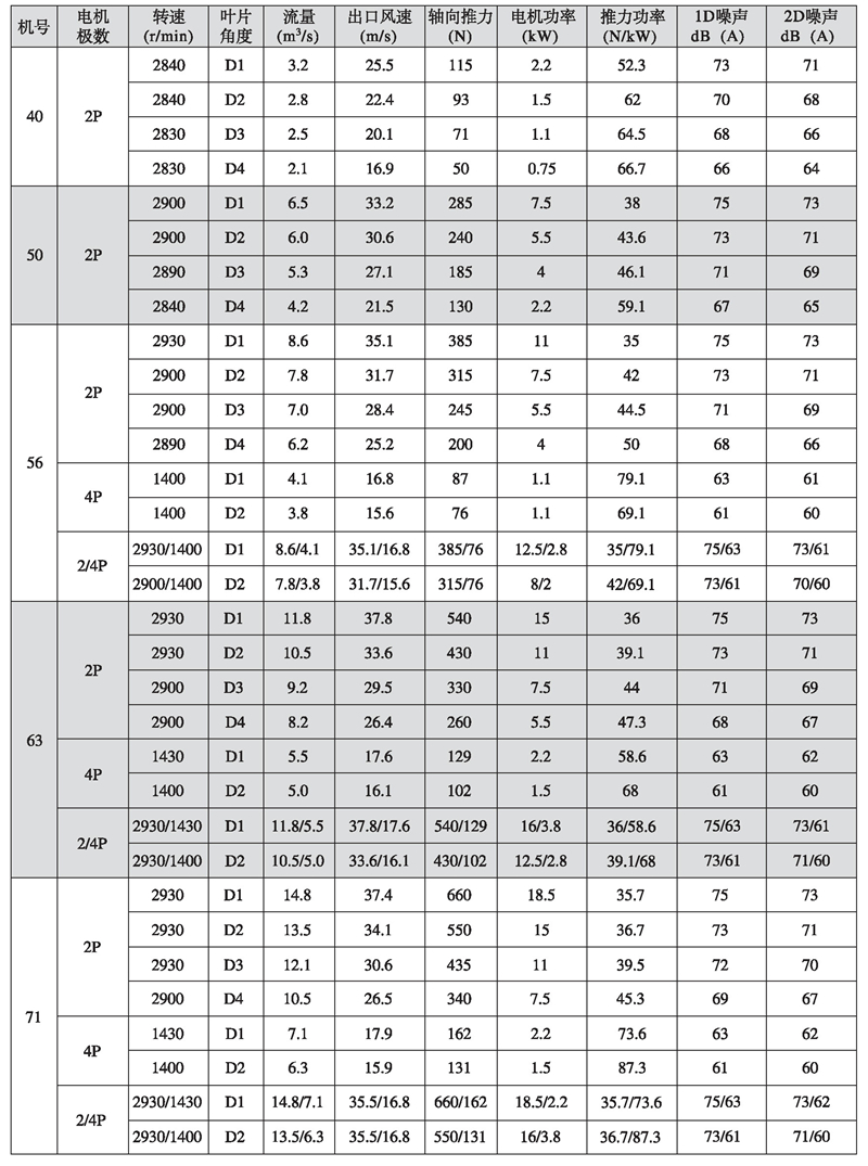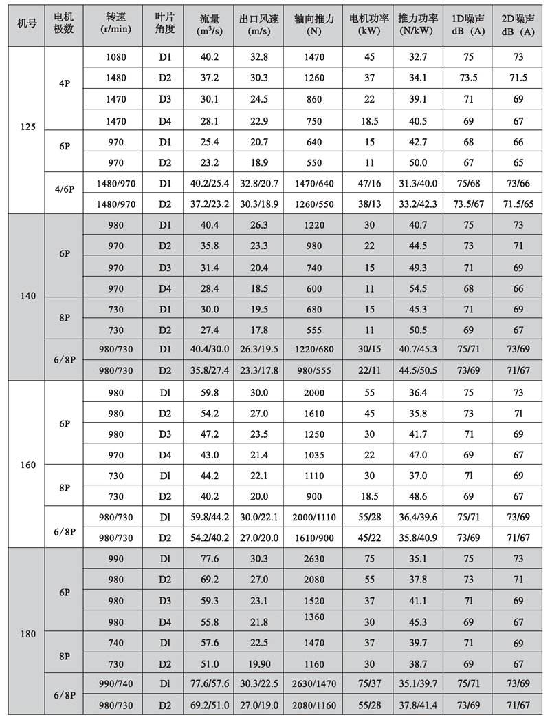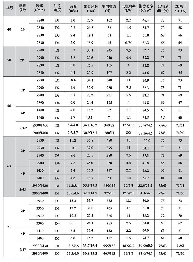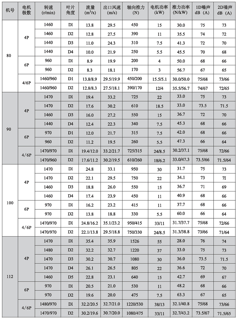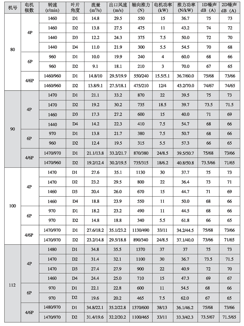 五、K型系列隧道射流風(fēng)機(jī)性能參數(shù)表