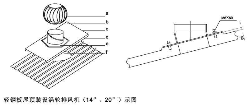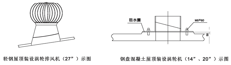 DWT-IV型(無電機)屋頂渦輪排風(fēng)機屋面安裝示圖說明