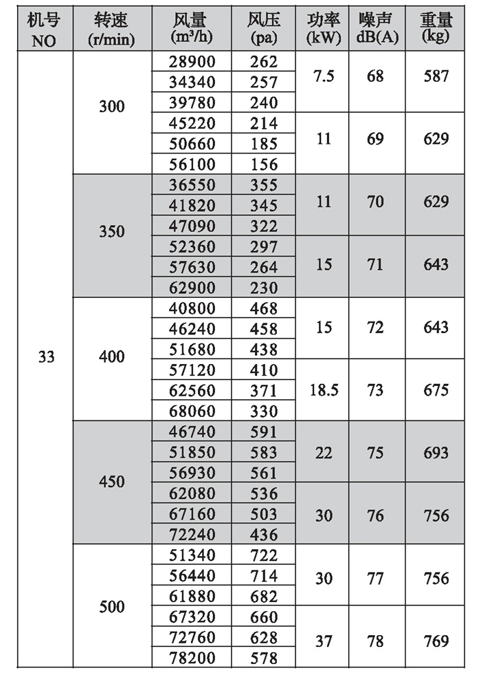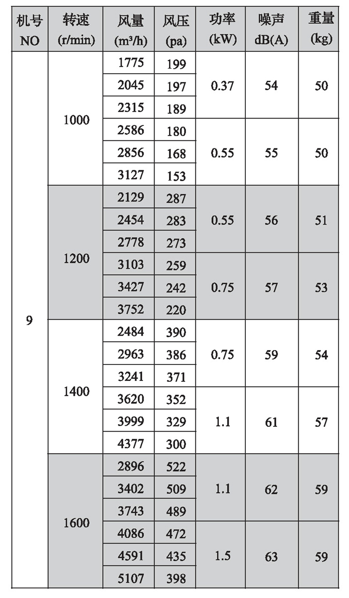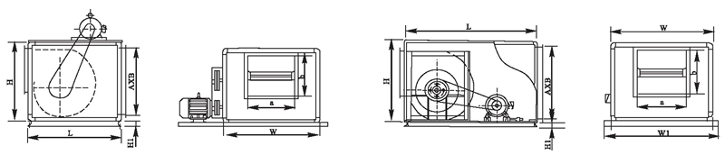 2.機(jī)號NO為葉輪直徑英寸數(shù),如電機(jī)放在風(fēng)機(jī)上面,A型高度須補(bǔ)加電機(jī)高度,寬度須補(bǔ)加皮帶罩寬度;如電機(jī)放在風(fēng)機(jī)側(cè)面,A型寬度須補(bǔ)加電機(jī)長度。