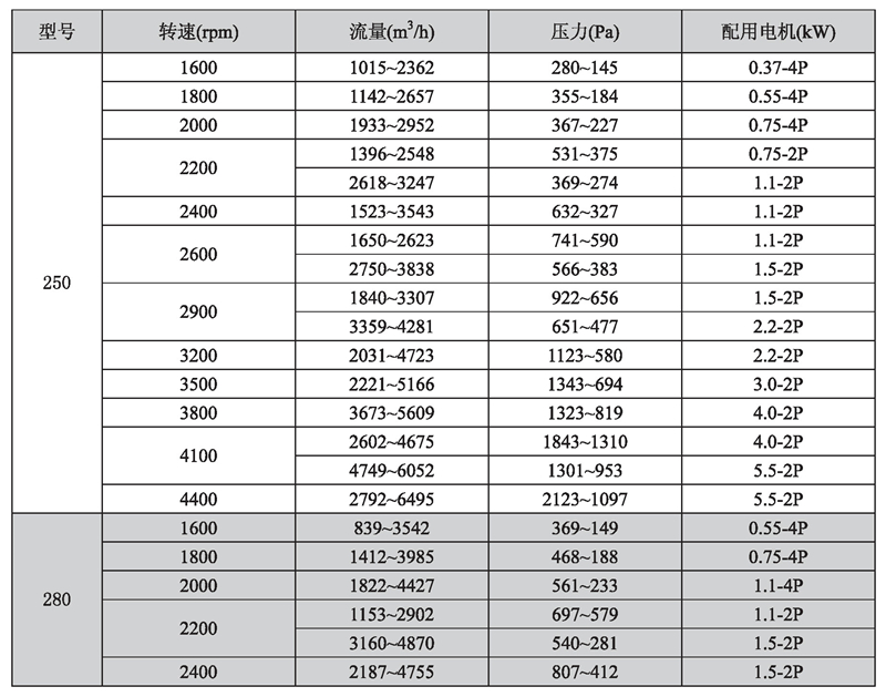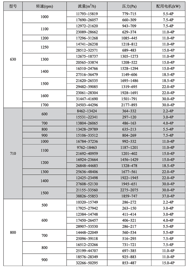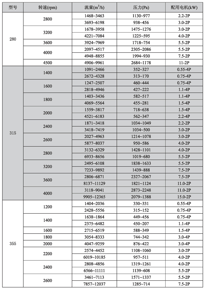 輸送介質(zhì): HTFC-V 系列風(fēng)機(jī)輸送介質(zhì)為空氣及不自然、無(wú)腐蝕、不含粘性、附著性、介質(zhì)所含塵土及顆粒物不大于150mg/m3的其他氣體。氣體溫度一般不超過(guò)80℃。