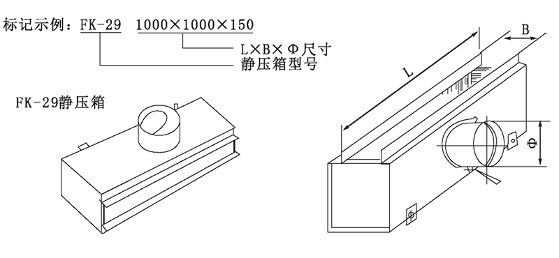 靜壓箱是與條縫形風(fēng)口配套的必不可少的配件,主風(fēng)道送風(fēng)通過(guò)軟管接至靜壓箱的頸部(即“中”尺寸處)此處設(shè)有一個(gè)蝶形閥,可控制進(jìn)入靜壓箱的風(fēng)量。靜壓箱的內(nèi)表面貼有吸音減震材料,起到消除部分噪音的作用。送風(fēng)道配置靜壓箱能減少動(dòng)壓增加靜壓,起到穩(wěn)定氣流的作用,使之能得到更理想的送風(fēng)效果。BXL可根據(jù)條縫風(fēng)口尺寸而定,中尺寸根據(jù)所選用的軟管直徑而定,L尺寸用戶可在小于2米范圍內(nèi)任意選取,還可以根據(jù)用戶的特殊要求承接靜壓箱的設(shè)計(jì)制造。